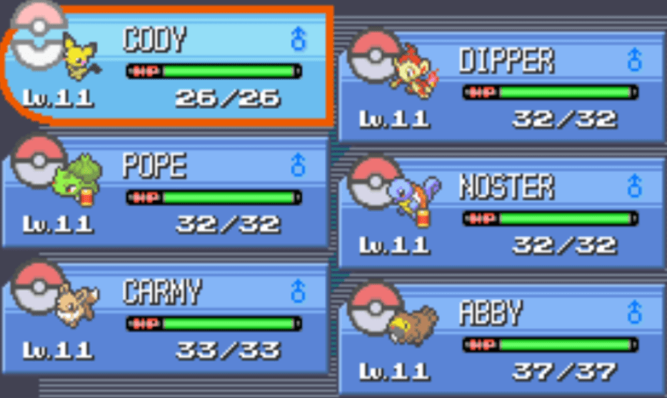 Dipper and I immediately have to fight Tamt and his new Piplup, he said he is too cool to name his Pokemon. The battle comes down to the wire but a weakened Dipper is able to win with one final scratch. The next day Tamt convinces us to go to the Lake and we run into this weird guy, he was so creepy that we rushed over to Professor Rowan’s lab. While there he gives us a pokedex and we start our journey. After telling our mom about our new life goal she gifts us an Eevee, who we name Carmy. After battling Dawn she provides us with PokeBalls and our run officially can start.